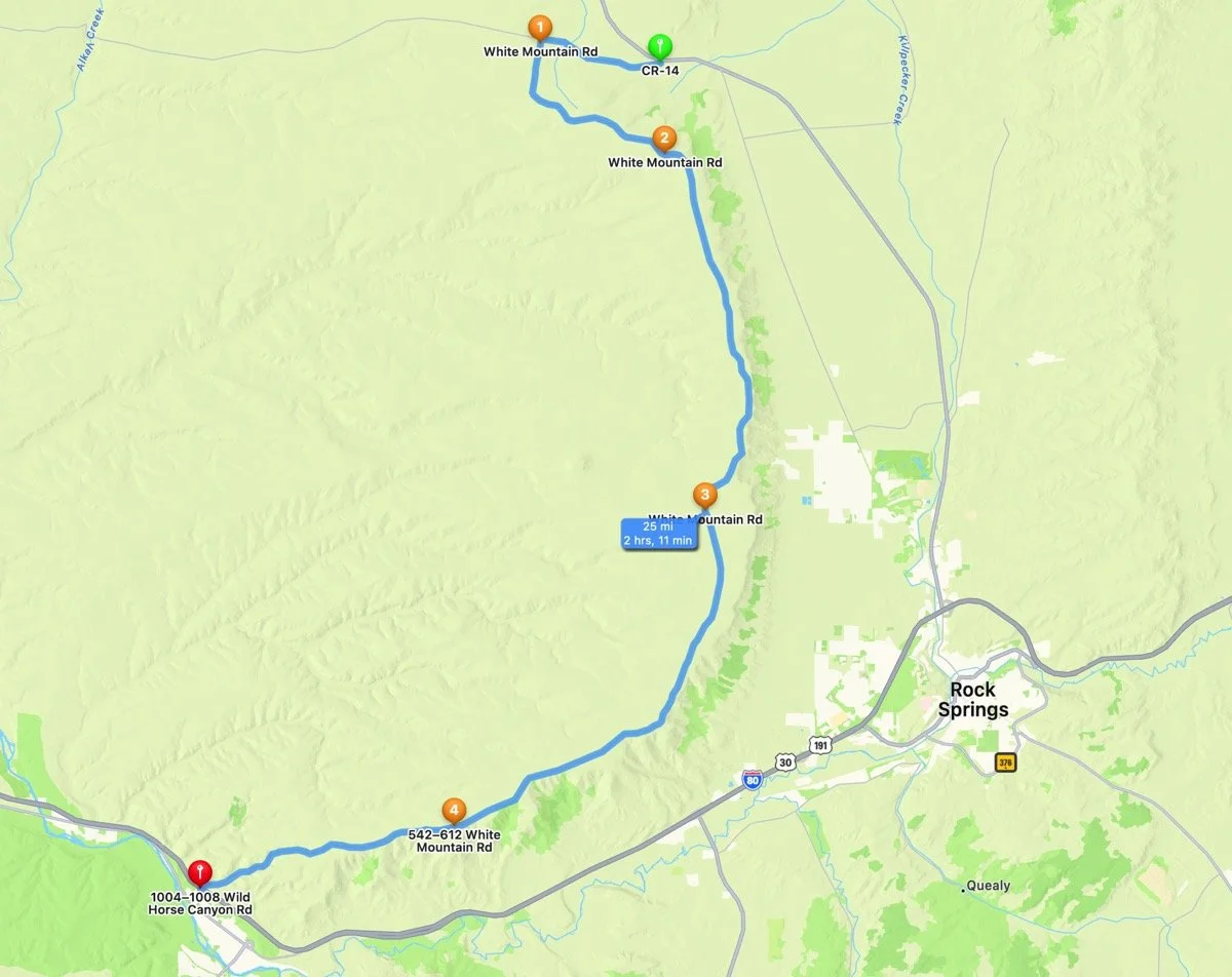 It's parking day here at the International Airstream Rally in Rock Springs and… we already parked yesterday. That means a free day for exploring. We plotted out a route on minimally maintained dirt roads to the west of Rock Springs. White Mountain and wild horses were ahead of us. As our tires crunched along the gravel road, the towering Wyoming mountains and sprawling high desert landscapes came into view. We ventured onto the White Mountain Road, a stretch of backcountry path between Rock Springs and Green River in Wyoming. Our destination: a haven where Wyoming's wild horses roam free, their silhouettes captured against the sun-bleached expanse of the Western landscape.